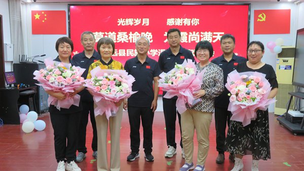 ~ 张登莉、魏林惠等四位刚刚退休的老师在看到学校工会精心准备的图片时,心潮澎湃,无比激动。当他们工作和生活中的一张张老照片出现在大屏幕上,现场响起一阵阵热烈的掌声。魏林惠作为退休教师代表发言时激动之情溢于言表,留恋之意难掩于心。年轻教师还精心编排了舞蹈《退休快乐》向老教师们致敬,校领导给四位老教师献上了鲜花。