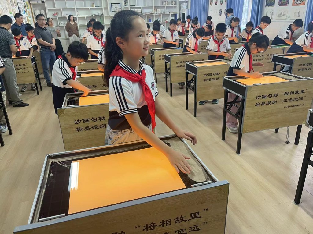 ~ 此次将沙画课程引进校园,走进课堂,就是为了通过这些特色课程使学生提高动手实践能力,提升发现美、鉴赏美、创造美的能力,在丰富学生的课余文化生活的同时提高艺术修养,为学校沙画教学奠定了基础。(图文:周丹 初审:张安 审签:杨孝前)