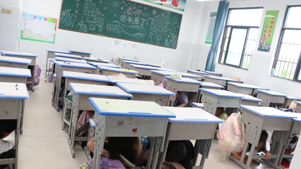 ~ 上午8:20,随着一阵急促的警报声响起,演练正式拉开序幕。正在教室里上课的学生们在老师的引导下,迅速做出反应。他们用双手护住头部,按照预定的疏散路线,从教室前后门有序撤出。