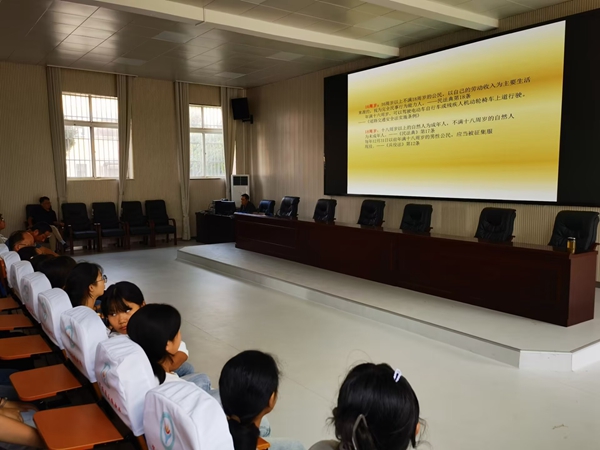 宋伶辉副院长就《未成年人保护法》、“校园欺凌”、“反电诈”等,结合生动具体的案例向同学们进行法治教育。本次普法宣传教育切切实实提高同学们法治意识和增强青少年自我保护能力,护航青少年健康快乐成长。(供稿:代恒雨 审核:董志友)