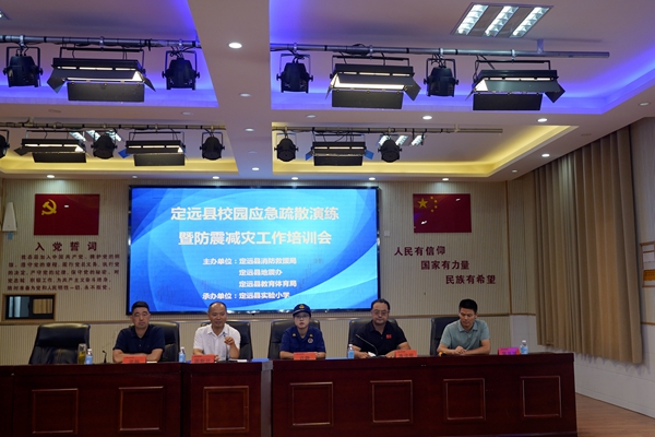 9月13日,定远县中小学地震应急疏散演练观摩会暨校园应急业务骨干培训会在实验小学教育集团曲阳路校区举行。定远县政府副县长许倩,县地震办主任陈新开,县委教体工委委员、教体局工会主席姜杨,教体局法安股施道儒等领导及全县中小学分管安全工作人员观摩。