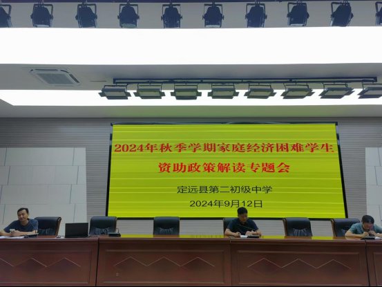 为了深入贯彻国家教育扶贫政策,确保每一名家庭经济困难学生都能得到必要的支持和帮助,2024年9月12日,定远县第二初级中学成功召开了家庭经济困难学生资助工作专题会。会议由学校党支部书记、校长杨传玉主持,全体行政班子成员、班主任及负责资助工作的相关人员参加了会议。
