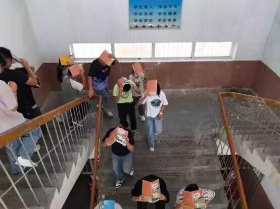 ~ 上午9:35,预先警报声在校园上空响起。各班级教师反应迅速,立即停止授课,指挥学生迅速躲到课桌下、墙角等安全地带,用书包护住头部。紧接着,空袭警报响起,师生按照预定的疏散路线快速有序地撤离。整个过程仅用了1分钟不到的时间,达到了预期的效果。
