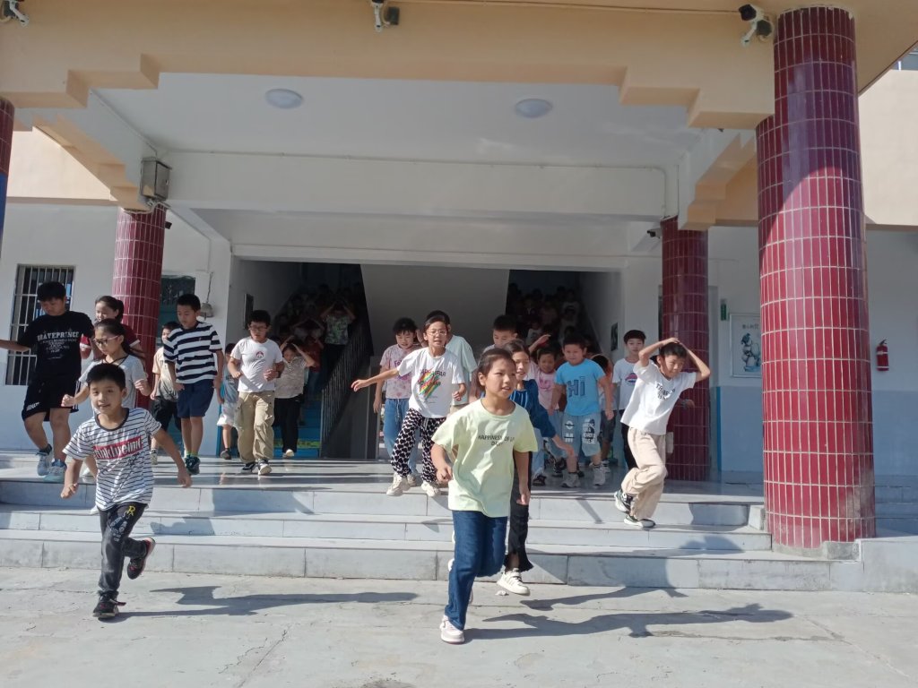~ 随着警报声响起,演练正式开始。在老师的指导下,学生们立即双手抱头或用书本护头,从教室前后门有序撤离教室。在疏散过程中,大家保持冷静镇定,没有出现拥挤、推搡等混乱现象。只用了2分多钟的时间,全校师生全部安全地到达指定的避险场所。