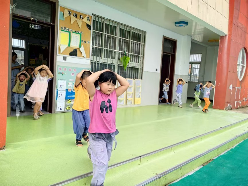 ~ 随着警报声响起,演练正式开始。在教师的引导下,孩子们迅速而有序地沿着预定的逃生路线在最短时间内撤离到指定的安全地点。整个过程有条不紊,充分展示了孩子们的冷静与从容。