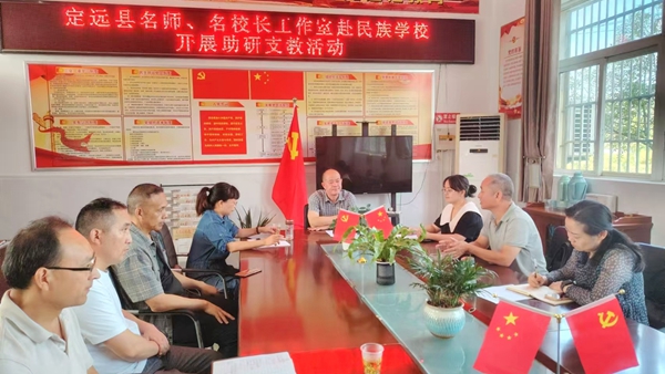 ~ 参与此次活动有定远县教体局教研室主任武红、副主任李秀娟,定远县名校长、名师工作室刘德俊、丁红、郭后会、陈莹、赵珺等10位成员,及定远县民族学校全体教师。