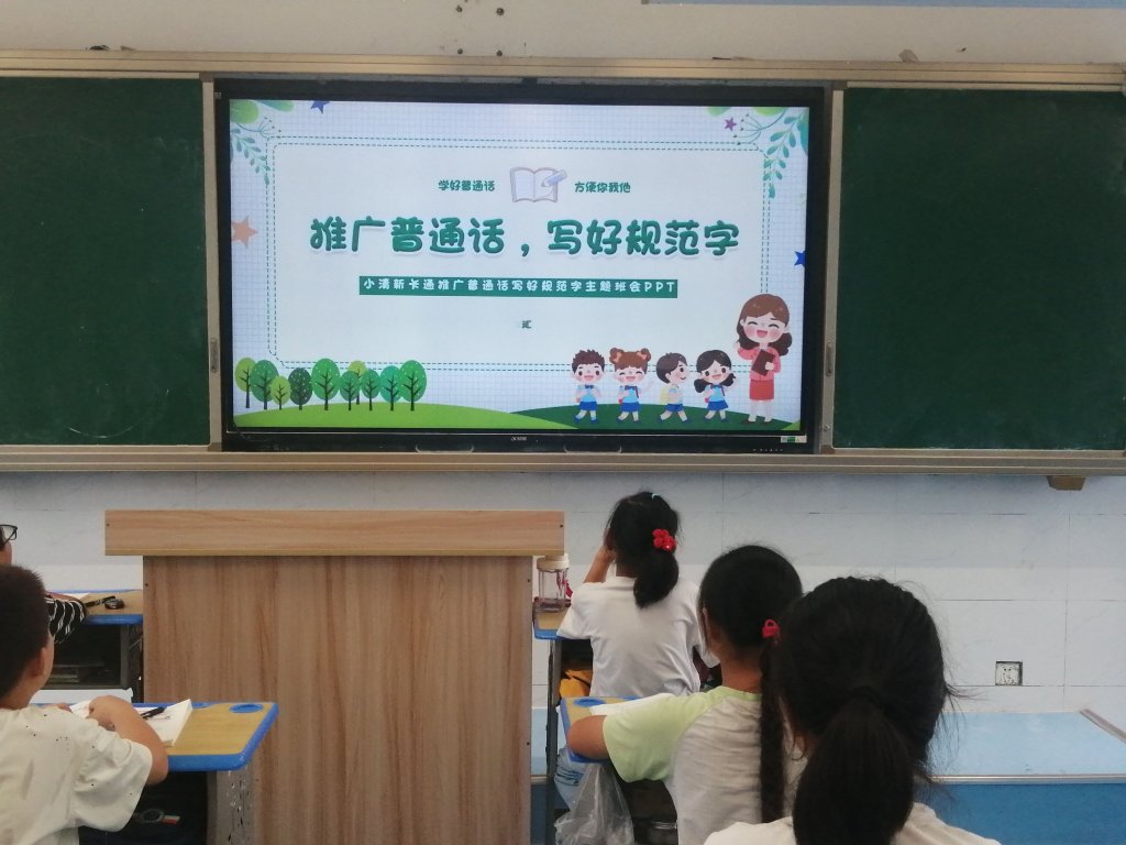 ~ 电子大屏,滚动播放第27届推普周活动主题:“加大推普力度,筑牢强国语言基石”;国旗下讲话,宣传说好普通话、写好规范字;制作宣传展板,版面精美,文字丰富,学生喜闻乐见;班级开展主题班会,宣传说好普通话和写好规范字的好处;宣传条幅,色彩艳丽,吸引学生的眼球,普通话经典诵读比赛,规范字书写比赛等,形式多样的宣传方式,活动开展的有声有色。
