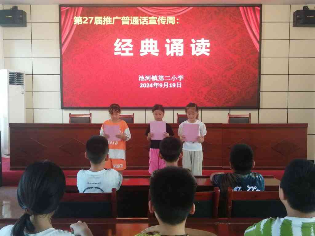 ~ 今年是中华人民共和国成立75周年,是教育强国全面开启的重要一年。9月15日至9月21日是“第27届全国推广普通话宣传周”活动时间,今年活动主题为“加大推普力度,筑牢强国语言基石”。定远县池河二小多举措开展宣传教育活动,为大力推广和规范使用国家通用语言文字助力。