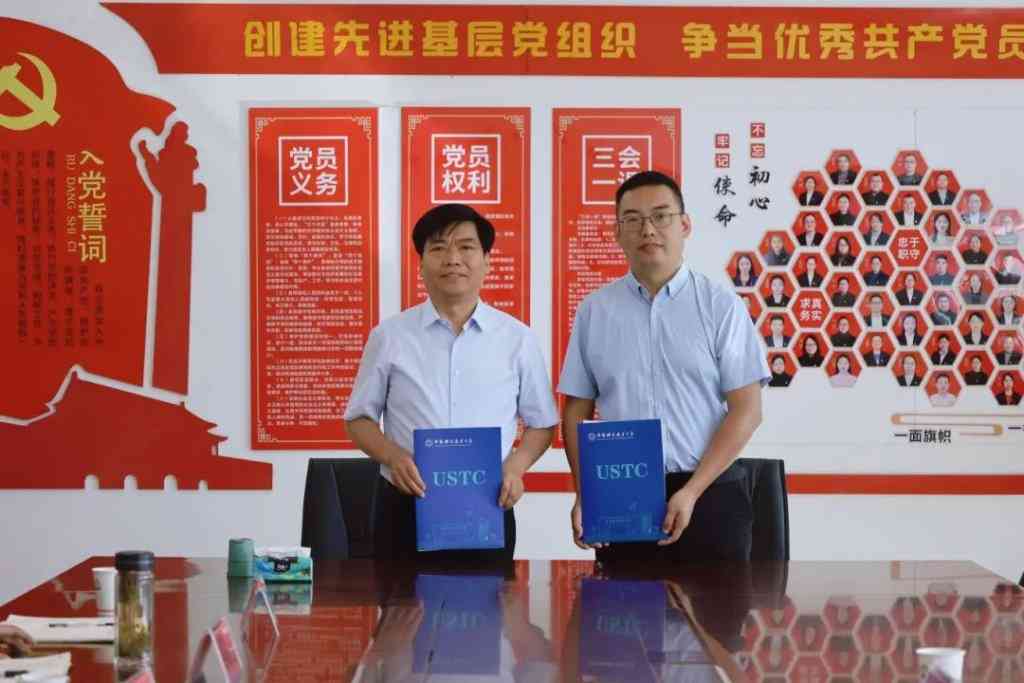 ~ 王浩波主任和英华中学总校长张景现场签约并授牌,定远英华中学成为中科大优质生源基地。