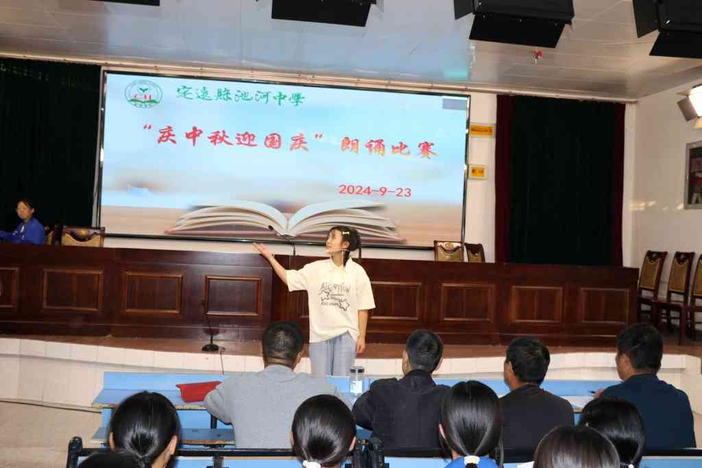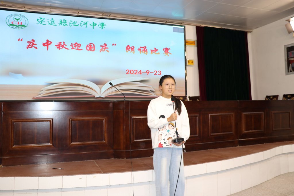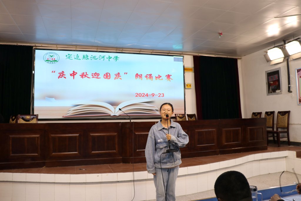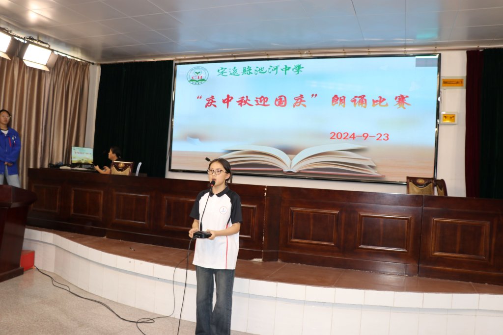 ~ 经典促成长,美文伴人生。9月23日下午,为庆祝中华人民共和国成立75周年和中秋佳节,增强寄宿生的爱国情感和民族自豪感,提升学生的语言表达能力及文学素养,定远县池河中学举办了“庆中秋迎国庆”经典美文朗诵活动,七八年级各班推选的优秀学生参加了比赛活动。