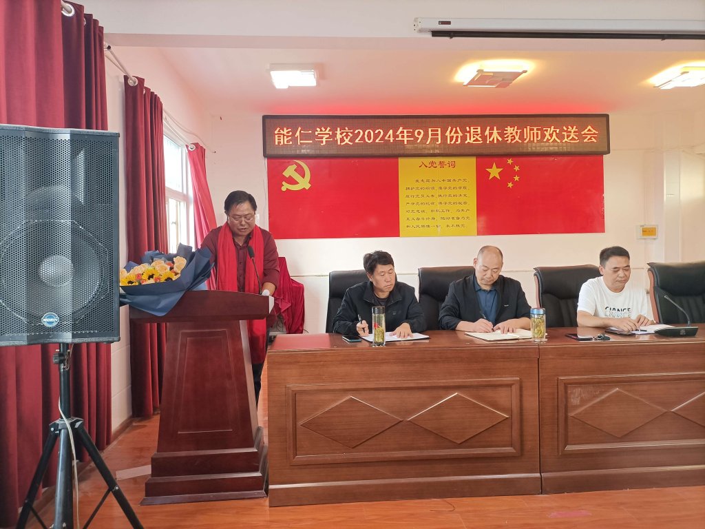 ~ 9月23日下午,一场温馨而隆重的退休教师欢送会在能仁学校会议室举行,全体教职工齐聚一堂,欢送俞东泽老师光荣退休。 老骥伏枥,心存桃李之梦;桑榆非晚,薪传杏坛之火。定远县能仁学校校长张中保代表学校向退休教师致欢送辞,对俞教师做出的无私奉献给予了充分的肯定,对俞老师为学校工作的开展所付出的辛勤劳动和贡献表示衷心感谢。