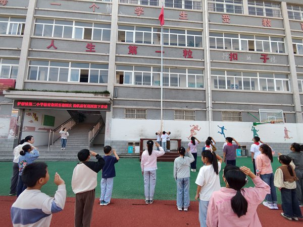~ 值在国庆节来临之际,定远县炉桥镇第二小学教育集团政教处和少先队精心策划并开展了一系列丰富多彩的爱国主义教育活动,为庆祝这一盛大节日注入了浓厚的爱国情怀。此次活动以“向国旗敬礼”为主题,旨在激发学生们的爱国热情,传承红色基因。