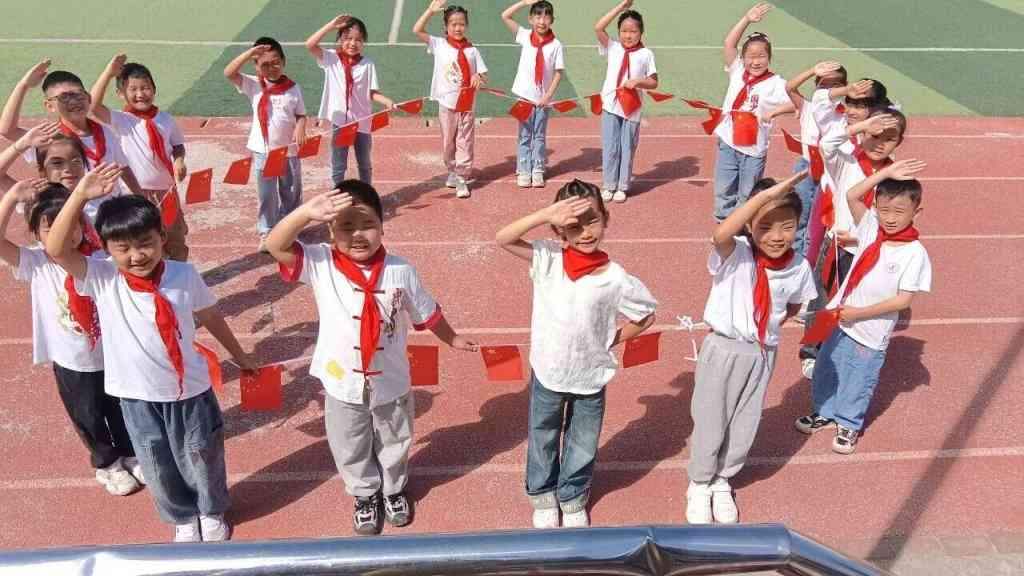 ~ 活动现场,学生们佩戴着鲜艳的红领巾,整齐地站列在操场上。随着激昂的国歌声响起,他们面向国旗,庄严地行队礼,眼神中充满了崇敬与自豪。(图文:伊露 初审:刘明 审核:徐久海 审签:李四军)