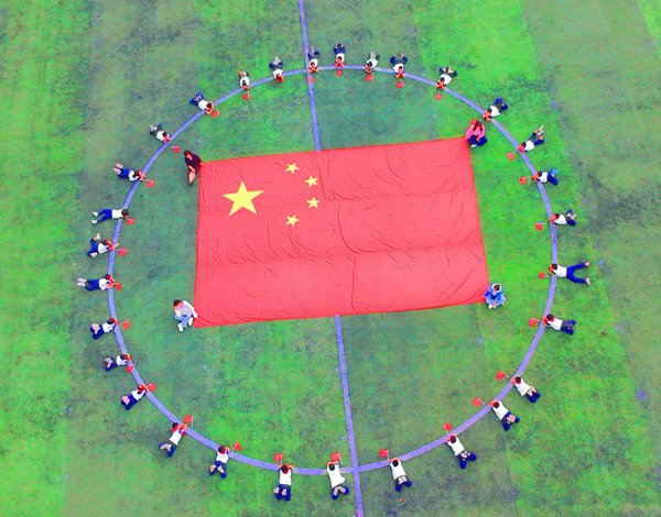 育才学校举行“情满月圆·爱系祖国”庆国庆红旗操展演活动