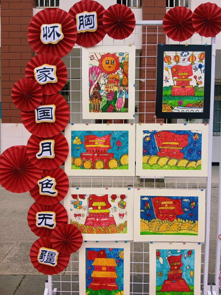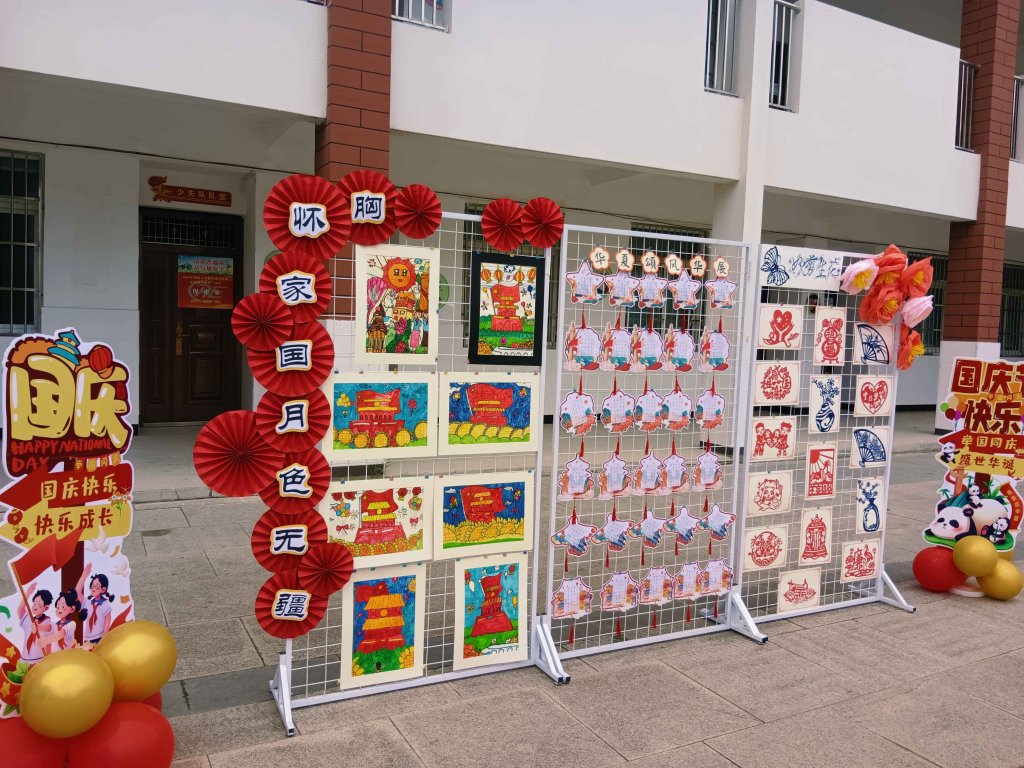 ~ 在国庆节即将来临之际,为弘扬爱国主义精神,丰富青少年的课余生活,定远县炉桥一小乡村少年宫举办了一场精彩纷呈的迎国庆活动,展示了青少年们的书法、绘画和剪纸作品。