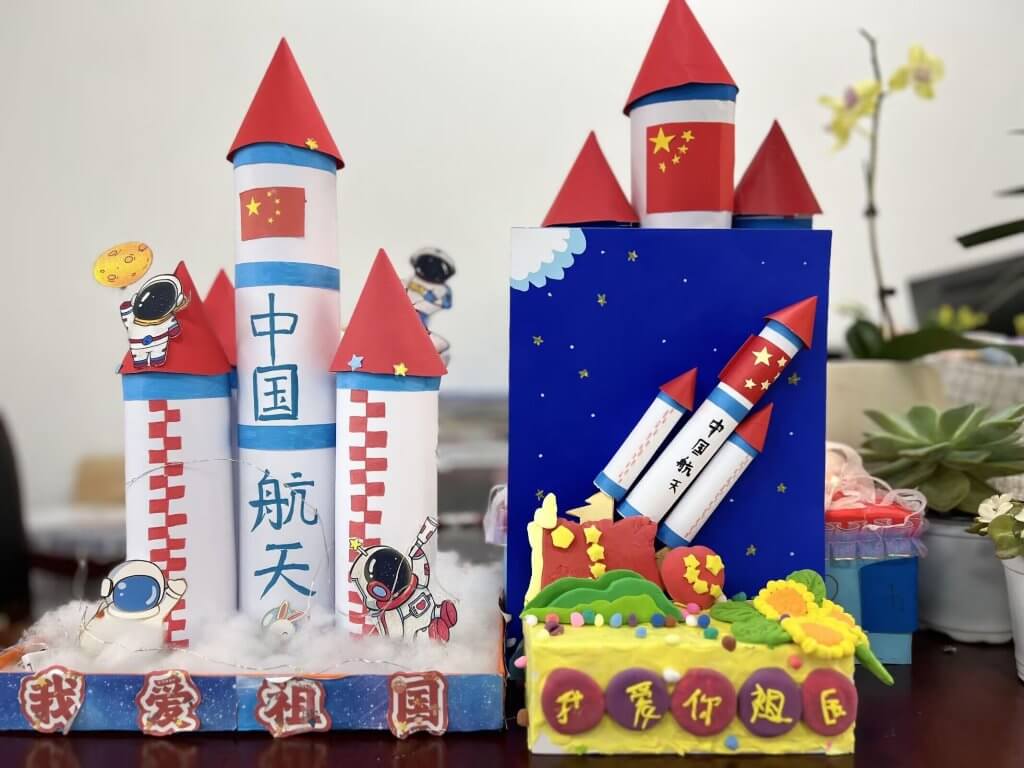 ~ 活动中,各班以主题班会的形式向孩子们讲述了新中国诞生的艰辛历程,深情回顾了祖国七十五周年的辉煌灿烂,用真情诉说着对伟大祖国的热爱。 校园里还举办了“献礼祖国”手工作品大赛、手抄报展览和绘画比赛。参赛的手工作品充满创意;同学们用手中的画笔,描绘出祖国的壮丽山河、悠久历史和灿烂文化。一幅幅精美的手抄报和绘画作品,展示了同学们的艺术才华和对祖国的深深祝福。