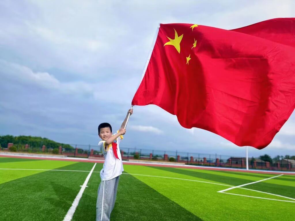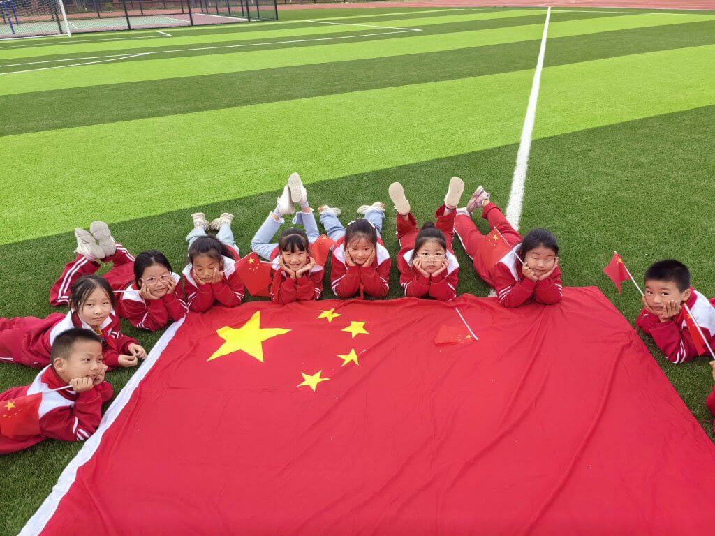 ~ 此外,学校还组织了“我和国旗合个影”活动。同学们纷纷与国旗合影,用灿烂的笑容和鲜艳的国旗构成了一幅幅美丽的画面;高年级同学积极参加“红领巾爱祖国”朗诵比赛,通过饱含深情地诵读爱国诗词、爱国故事,厚植队员们爱国主义情感,丰富节日内涵。