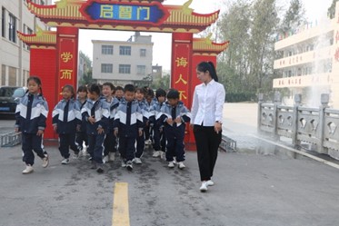 ~ 仪式开始由老师带领各班学生有序的通过“启智门”。踏过启智门意味着孩子们从此正式踏入学习的殿堂,开启求学之旅。