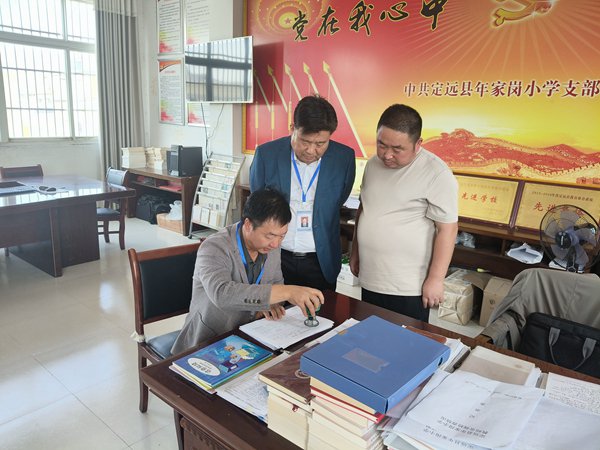 10 月 11 日下午,定远县责任督学姜林皇和夏明松来到年家岗小学及幼儿园,对学校 2024 年下半年义务教育均衡指标达标情况和学前教育普及普惠重点指标展开专项督导检查。年家岗小学党支部书记、校长及督学联络员陪同检查。