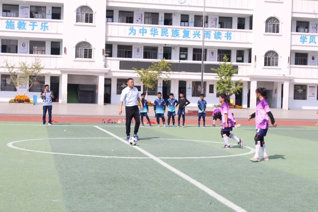 ~ 随着学校党支部书记、校长黄海山的一声哨响,那颗黑白相间的足球高高飞起,瞬间点燃了场上球员们的激情。本次校园足球联赛,黄校长作为主裁判,不仅展现了对学校体育运动的重视和支持,更是为全校师生树立了积极参与体育活动的榜样。
