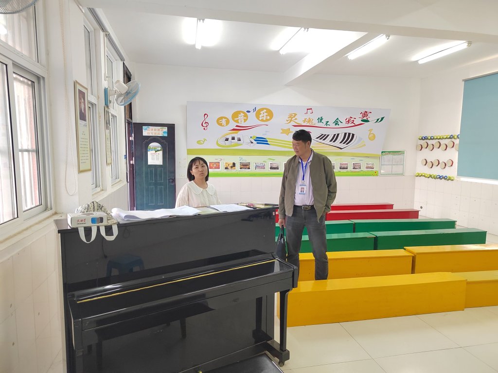 ~ 在小学部,督学查看了校园环境、校园文化、各功能室建设及使用情况。在仔细地核查数据和达标情况的前提下,深入学校美术教室、音乐教室等功能室实地查看,同时要求学校克服困难、科学规划、积极推进本校义务教育优质均衡发展工作。