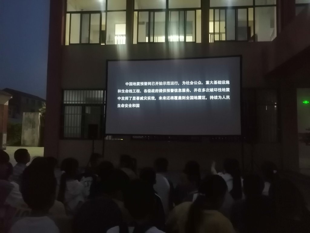 ~ 观影前,全体师生收看了“地震科普,携手同行”防震减灾教育宣传片。(供稿:张道云 审核:韩有伦)