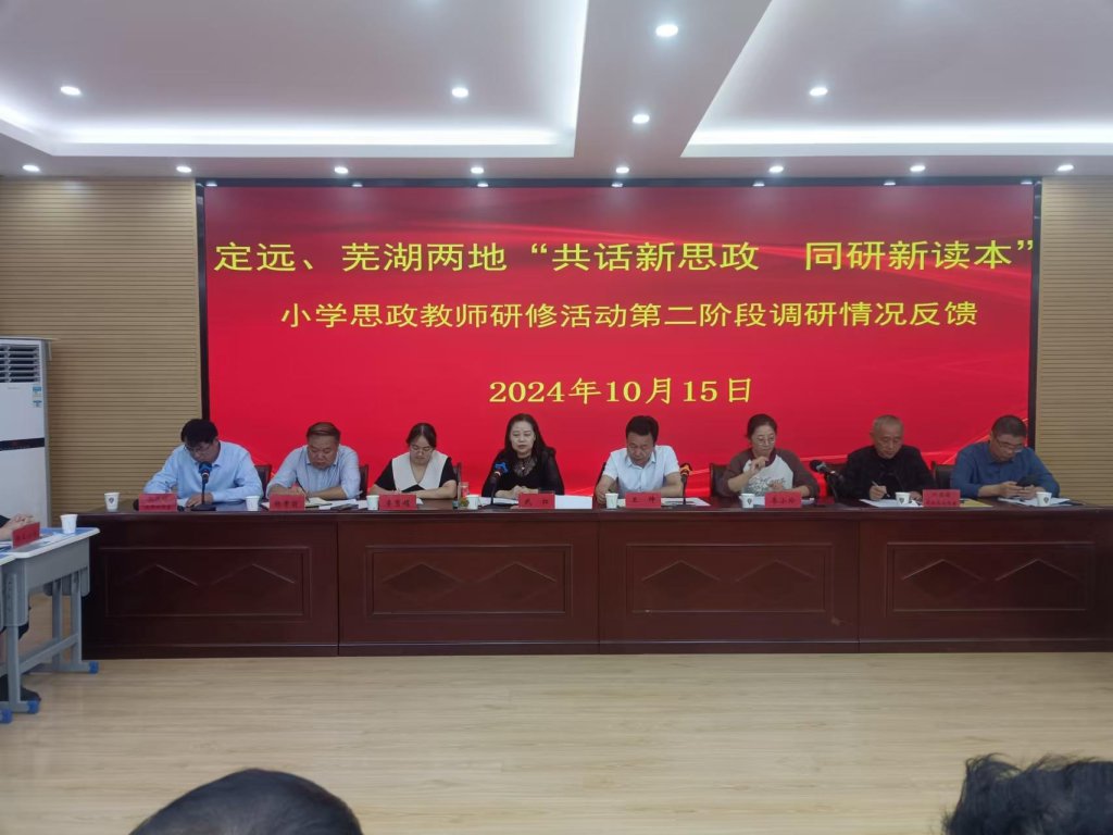 ~ 为充分发挥思政课铸魂育人关键课程的作用,深入研讨《习近平新时代中国特色社会主义思想读本》,10月15日上午,定远、芜湖两地“共话新思政 同研新读本”小学思政教师研修活动第二阶段调研情况反馈会在定远县职工子弟小学召开。