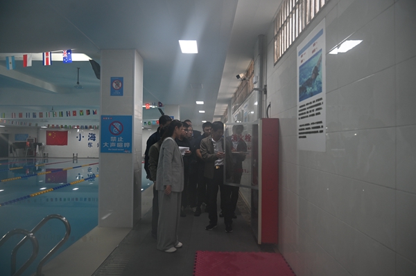 ~ 督导组领导巡视了校园的安全设施、消防设备、道路标识、人车分流情况;重点检查了教学楼、游泳馆、保安室、图书室消防水电线路等。随后,督查组深入校园的每一个角落,对教学区、学生活动区域等进行了一丝不苟的全面检查。他们以专业的眼光和严谨的态度,深入了解学校安全体系的构建与运行情况。