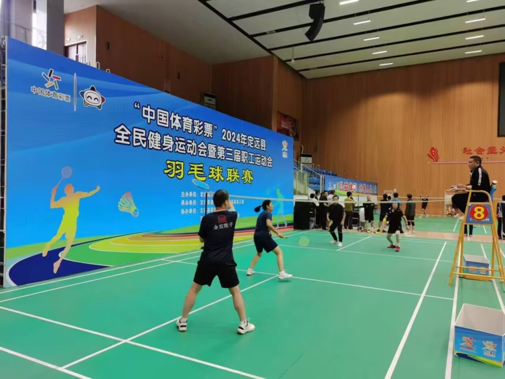 ~ 为丰富全县职工精神文化生活,提高团队合作意识,构建“健康生活 快乐工作”的文明和谐氛围。2024年10月19日-20日由定远县人民政府主办,定远县教育体育局、定远县总工会承办,定远县羽毛球协会、定远县良友运动拓展有限公司协办的“中国体育彩票”2024年定远县全民健身运动会暨第三届职工运动会羽毛球比赛在定远县综合体育馆举行。定远县副县长许倩、定远县政法委书记赵开俊、定远县总工会书记肖成山出席开幕式。