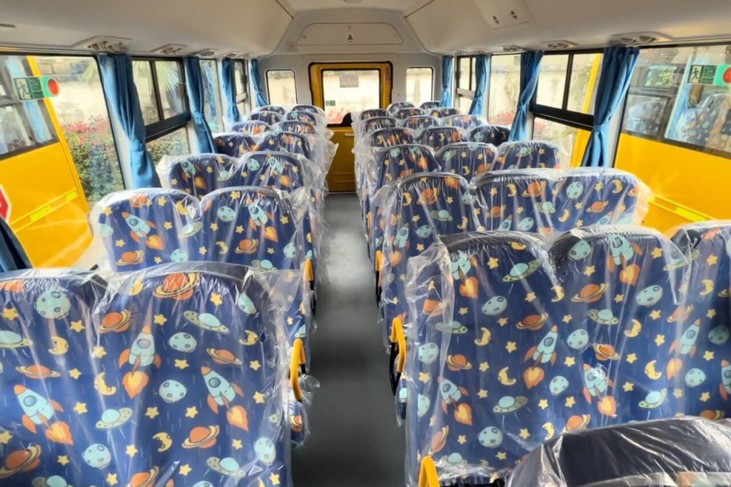 新校车不仅外观亮丽,而且配备了先进的安全设备,如安全带、应急门、灭火器、救生锤、医疗急救箱等,为学生的出行提供了坚实的安全保障。同时,新校车的投入使用,也将极大地改善学生的乘车条件,让家长们更加放心地把孩子交给学校。