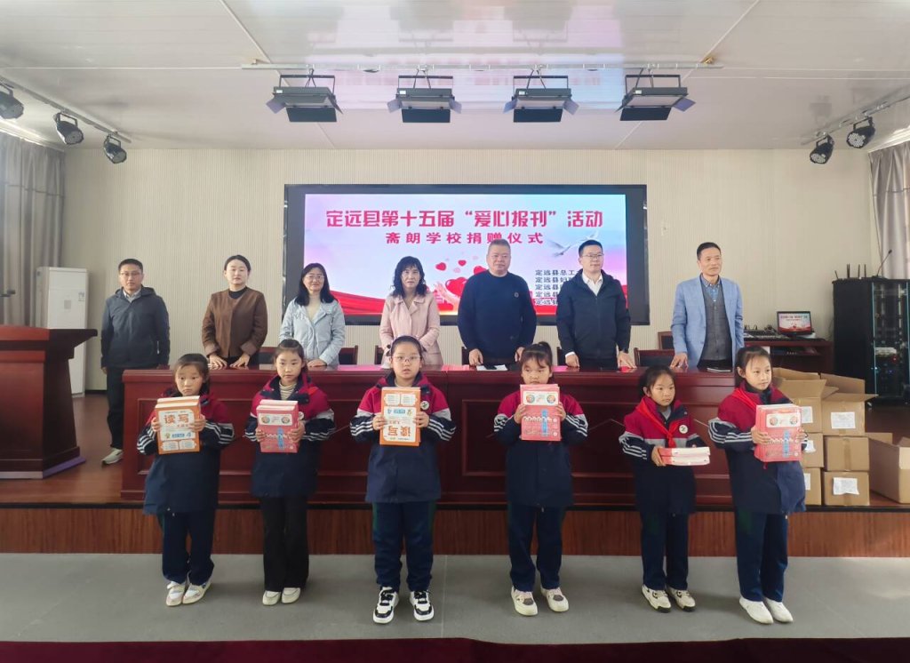 2024 年 10 月 23 日上午,一场充满爱心与温暖的图书捐赠活动在定远县斋朗学校举行,由定远县总工会党组成员姚吉丽、定远县妇联副主席王梅、定远县团县委书记武赟、定远县教体局基教股副股长郑云和定远县邮政公司总经理王玉权共同组成的“爱心报刊”捐赠活动领导小组带着满满的关怀与期望,为学校送来了一批珍贵的图书。