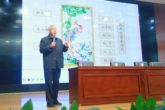 ~ 下午2时,活动启动仪式在该校“童乐谷”剧场举行。仪式上,副校长刘金婷代表学校接受赠书,旨在帮助师生们更深入地了解凤画的历史渊源和艺术特色。刘金婷表示将以此次活动为契机,进一步加强传统文化教育,培养学生们的文化自信。接着,凤画省级传承人张维武做了《凤画的魅力》专场讲座。通过讲座师生得知:凤画源于明初,多以凤凰为主题,象征吉祥幸福,是凤阳县一带流传的民间绘画形式,已有600余年的历史,2006年入选安徽省首批省级非物质文化遗产名录。在行政楼一楼会议室,马立敏老师带领孩子们开展了一场别开生面的“体验+乐享非遗”活动。她不仅向学生们展示了精美的凤画作品,还亲自指导学生们动手尝试绘制简单的凤画。通过亲手绘制,学生们不仅加深了对凤画艺术的理解,还体验到了传统工艺的乐趣与魅力。最后,同学们来到连廊处,观看了凤画展览。一幅幅精美独特、的凤画作品展示在学生的面前,让学生惊叹不已。在观展过程中,滁州技师学院凤画社团志愿者们现场演示了凤画的绘画与创造方法,并介绍了其作画手法。通过现场演示和讲解,师生们对凤画艺术有了更加直观和深入的了解。