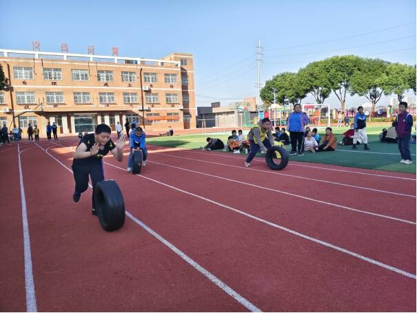 ~ 本次运动会设置了多项充满趣味的游戏,同学们在相互配合、团结协作中共享运动的快乐。运动员们推着轮胎向胜利的终点奔跑;参加彩色水瓶配对的运动员们注意力集中,记住队员颜色对应错误之处,争分夺秒,胜利后欢呼。