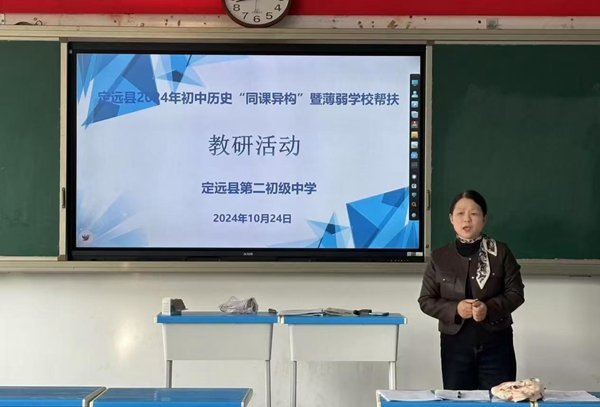 ~ 为提高初中历史教师教学教研水平,促进中青年教师专业发展,2024年10月24日,定远县城片、城郊片等学校初中历史老师齐聚定远县第二初级中学开展“同课异构”暨薄弱学校帮扶教研活动。
