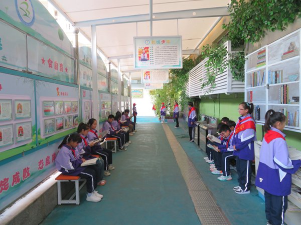 ~ 当直播镜头转向民族小学“和悦少年风采廊”时,孩子们“读、写、炼、行、吃、劳”的成长印记纷纷呈现。“小小读书吧”更是给孩子们提供了一个读书、休息、交流的空间,别具匠心的布置、温馨舒适的环境和浓厚的书香气息,每天吸引众多的孩子来到这里,成为校园一道亮丽的风景。
