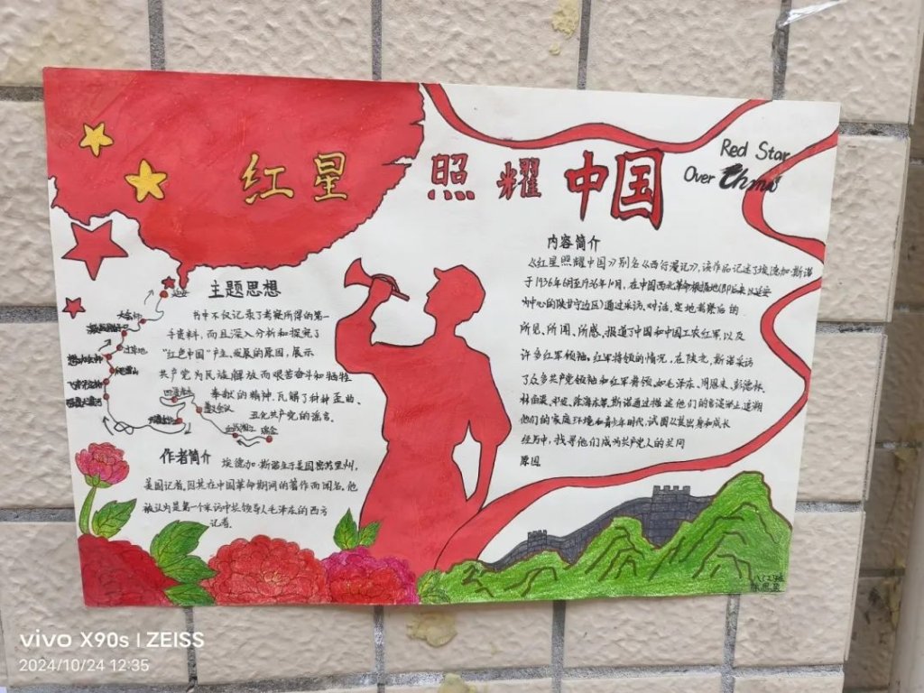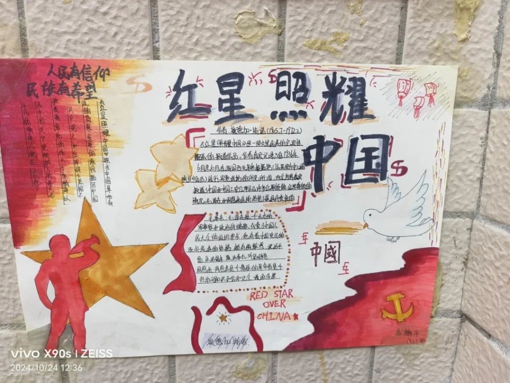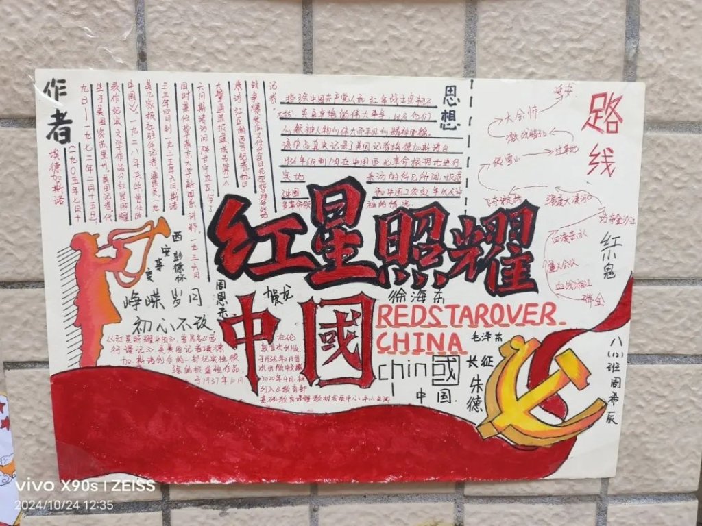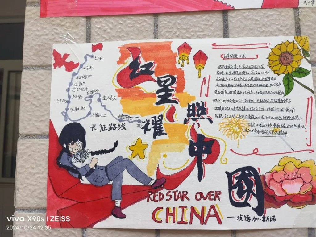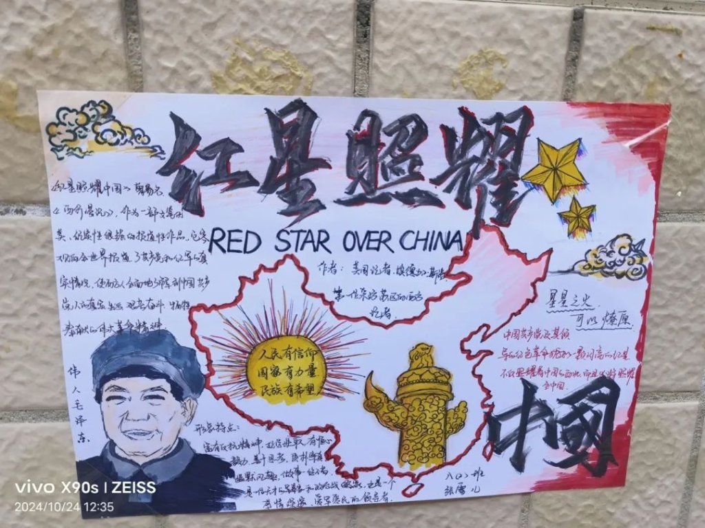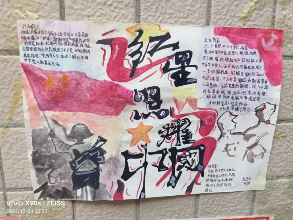 ~ “红星闪闪放光芒……”在这个金秋送爽的季节里,滁州市定远英华中学八年级开展了以读《红星照耀中国》为主题的读后感演讲比赛和手抄报制作活动。活动中,同学们怀揣着对历史的敬畏,用画笔勾勒那段峥嵘岁月,以声音传递革命先辈的坚定信念。