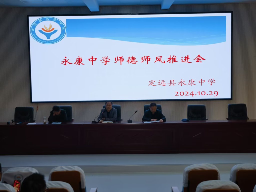 ~ 10月29日下午,定远县永康中学在校多功能大厅召开师德师风建设工作推进会,部署开展学校师德师风学习教育活动,推进加强和改进师德师风建设工作。校党支部书记、校长董志友主持会议,全体教职工参加会议。