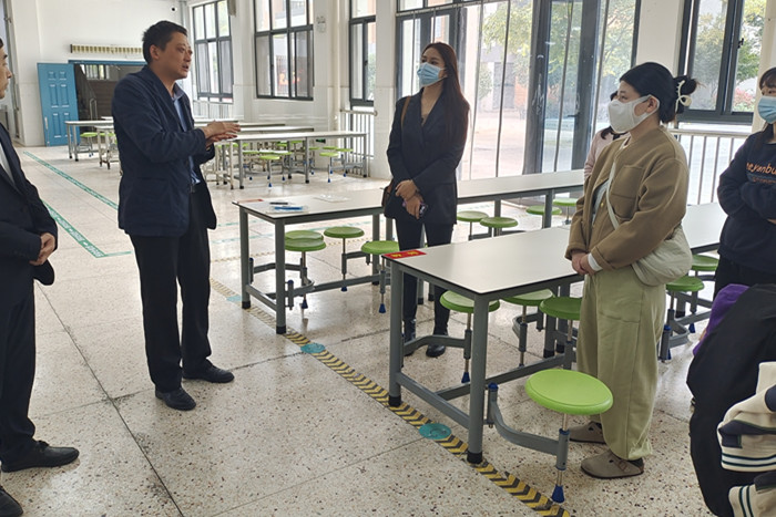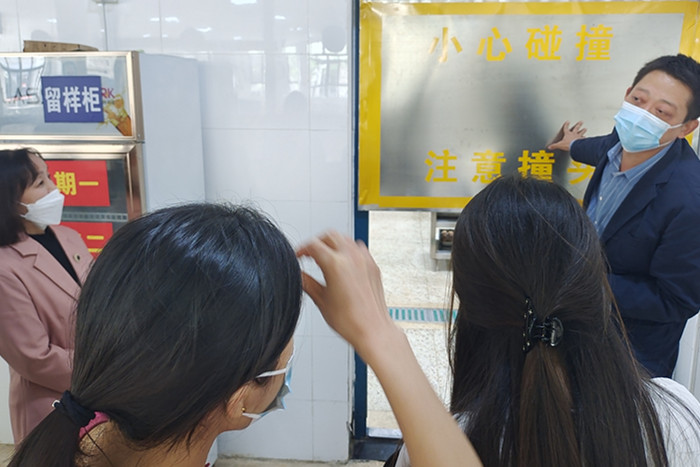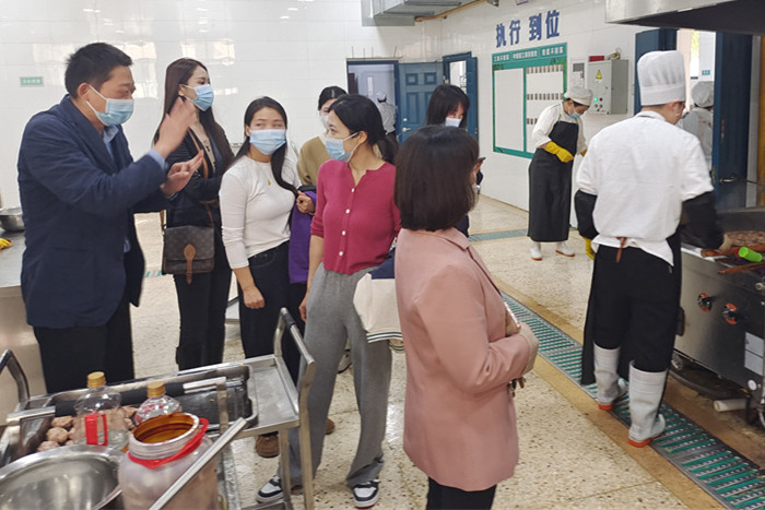 ~ 该校校长方笠带领家长代表依次参观了食堂前台、后厨、储存以及加工等场所,使他们对食堂的卫生环境和工作流程有了初步印象,特别是对现代化的设备、整洁的工作环境印象深刻。他还向家长代表讲解了学校完备的管理制度,如询价制度,切配人员岗位职责,废弃物处理制度,保洁人员职责等。家长代表亲自品尝了食堂提供的日常菜肴。随后大家在食堂进行了坦诚而又热烈的交流。