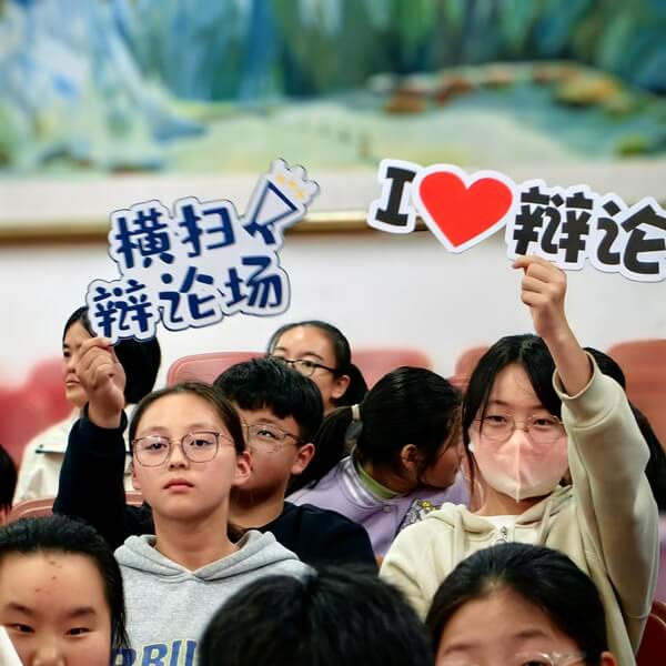 ~ 台上的选手唇枪舌剑、舌战群雄,台下的同学屏息凝视、聚精会神,不时举起手牌,为自己支持的辩手加油打call。精彩的辩论让现场掌声、喝彩声,此起彼伏。