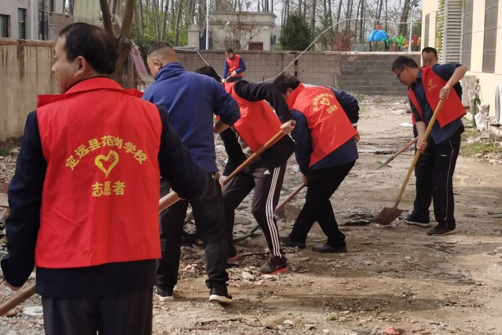 2024 年 11 月 4 日,定远县范岗学校党员志愿者们来到了范岗中心幼儿园,开展志愿服务活动——清理建筑垃圾。