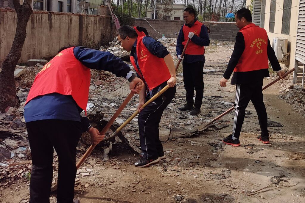 该校党员身着红色志愿者马甲,手持铁锹、扫帚等工具,齐心协力地投入到清理工作中。有的搬运大块的砖石,有的清扫细小的碎石和灰尘,大家分工明确,配合默契。尽管劳动强度较大,但他们没有丝毫怨言,脸上始终洋溢着热情的笑容。在大家的共同努力下,幼儿园的建筑垃圾被迅速清理干净。