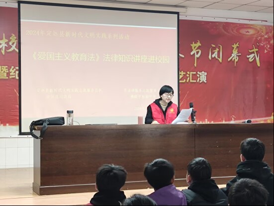 ~ 讲座由定远县司法局关工委、法宣股工作人员担任主讲。她以其深厚的理论功底和丰富的实践经历,将《爱国主义教育法》的内容精髓娓娓道来。他从历史的纵深视角,讲述了国家主权的重要性,阐述了为何每位公民都应具备深厚的爱国情感,并通过具体案例阐释了法律是如何守护这份崇高的情感,让在场的每一位听众无不为之动容。