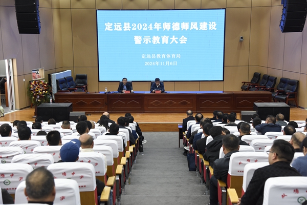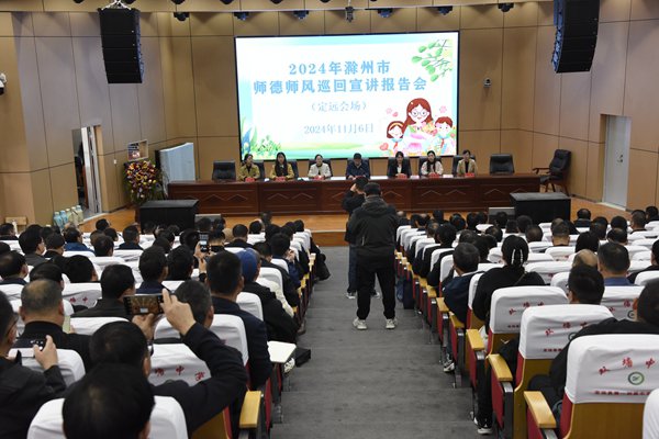 11月6日,由滁州市教体局主办的师德师风巡回宣讲定远分会场活动在定远县双塘中学举行。全县各级各类学校党组织书记、校长、分管领导和部分教师代表共400余人参加。县委教体工委副书记黄如勇主持会议。