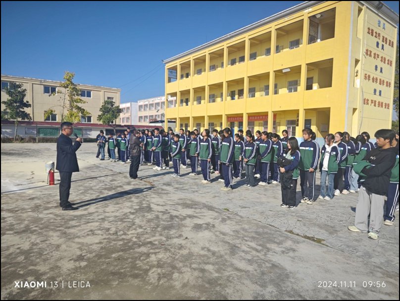 ~ 为响应国家消防安全号召,提高学校师生的消防安全意识和自救能力,定远县大桥初级中学成功举办了一场别开生面的“119消防日”应急演练活动。此次活动旨在通过模拟真实火灾场景,让师生们亲身体验并学习如何在紧急情况下正确使用消防设施、进行有序疏散及实施初步的自救互救措施。
