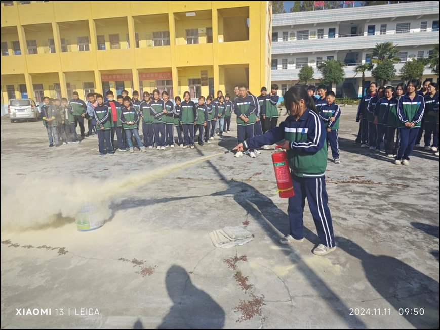 ~ 随后学校安全办主任李邦凯老师,向全体师生详细讲解了火灾发生时的应对策略、灭火器的正确使用方法以及火场逃生技巧等重要知识。现场模拟火灾,让师生演练了灭火器的操作,宿舍管理员、图书管理员、实验室管理员、食堂工作人员以及各班级学生代表等先后实际操作,真正掌握灭火器的使用。校党支部副书记马成国对本次演练进行了全面回顾与评估。