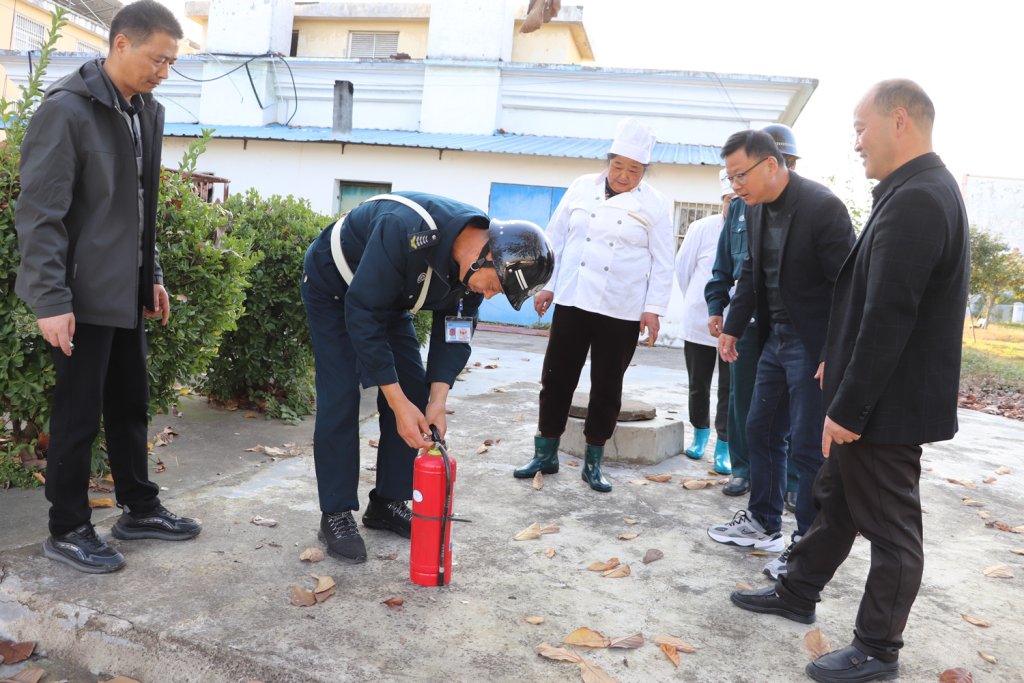 ~ 安全工作要常抓不懈,警钟长鸣,时刻关注消防安全,防患于未然!为了进一步加强学校消防安全工作,深化消防安全意识,有效预防和应对火灾,保障校园安全,11月11日,定远县天河初中安全办联合总务处对学生公寓、餐厅、门卫室等场所进行消防安全督查,发现问题限期整改到位。随后,组织后勤工作人员开展了消防安全知识培训及实操演练,详细介绍了火灾的预防和处理技巧。实操演练环节,安全办人员现场示范了灭火器的正确使用方法,并指导参训人员进行实际操作。