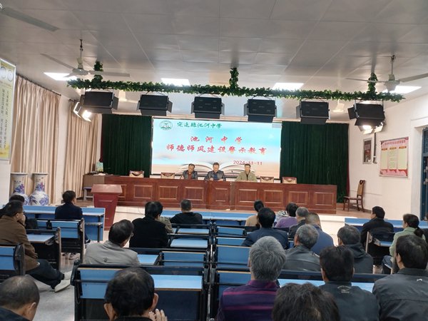 ~ 为进一步加强师德师风建设,提高教师的职业道德素养,推进师德师风建设活动的持续深入开展,11月11日下午,定远县池河中学在校大会议室召开了师德师风建设警示教育专题会议。会议由校党支部书记、校长欧健海主持,全体教职工参会。