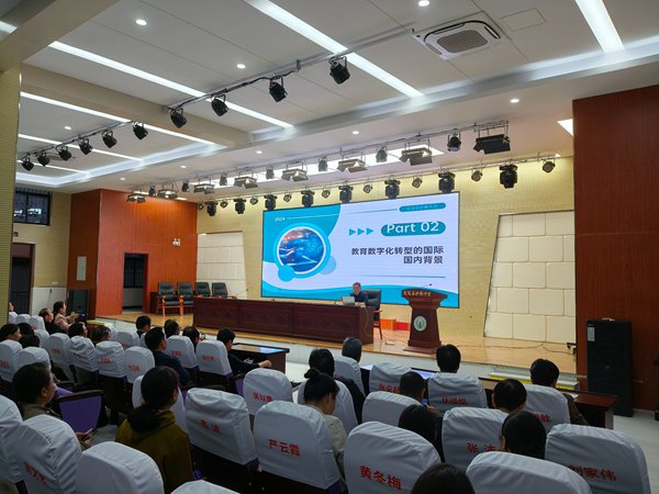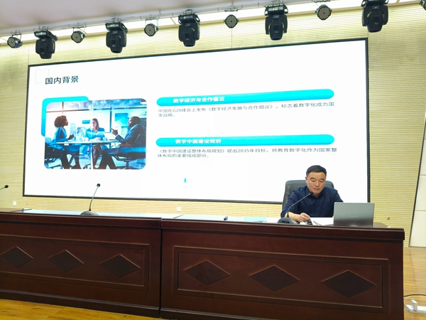 ~ 教育数字化转型是新时代教育的必然趋势。11月11日下午,定远县炉桥中学在学校报告厅开展了《教育数字化转型发展研究与实践探索》培训会,此次培训由学校刘光副校长主讲,全体教师积极参与。本次培训会旨在让全体教师充分认识到教育数字化转型发展对提高教学质量、优化教学过程、促进师生互动、培养学生创新意识的重要意义。
