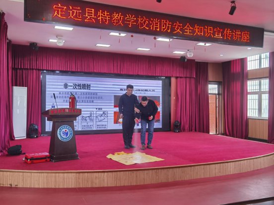 ~ 该校还邀请了安徽省政民消防技术中心的徐兴冠教官进行消防安全知识讲座以及技能培训和演示,让师生们掌握基本的消防技能和提高应对火灾的应急处置能力。