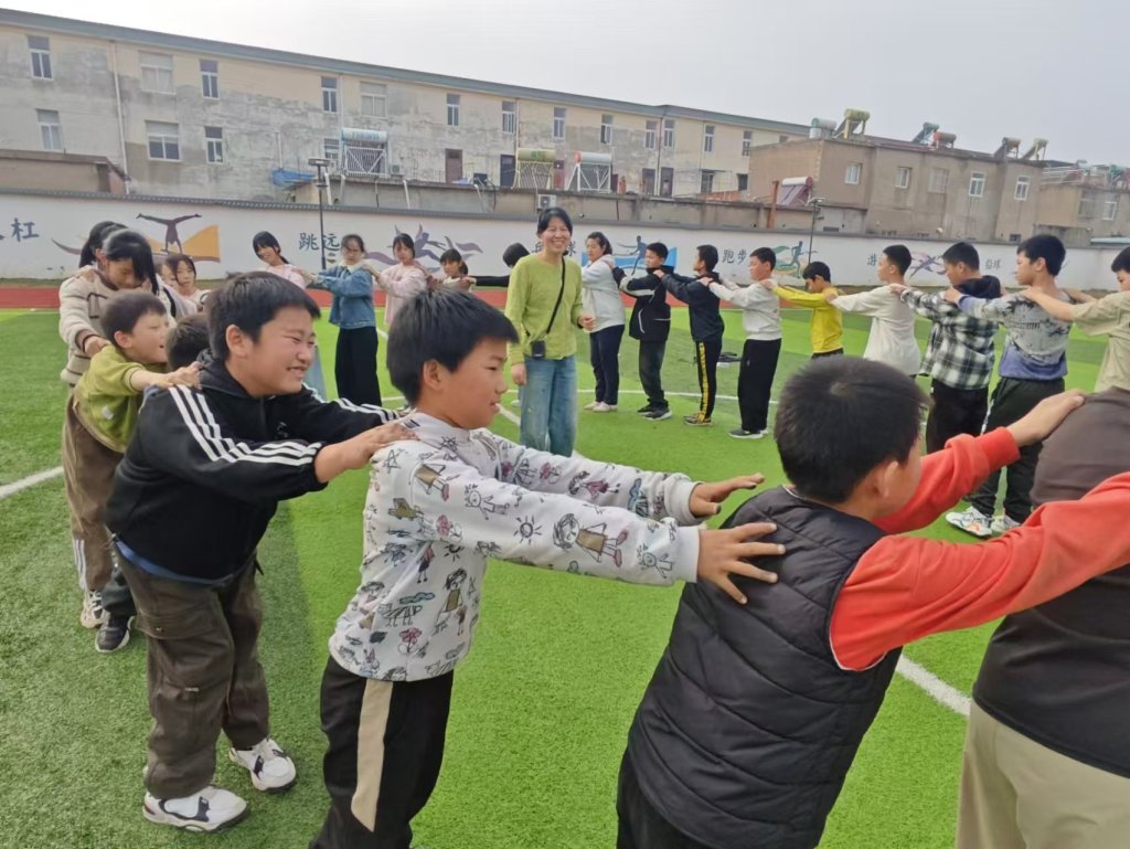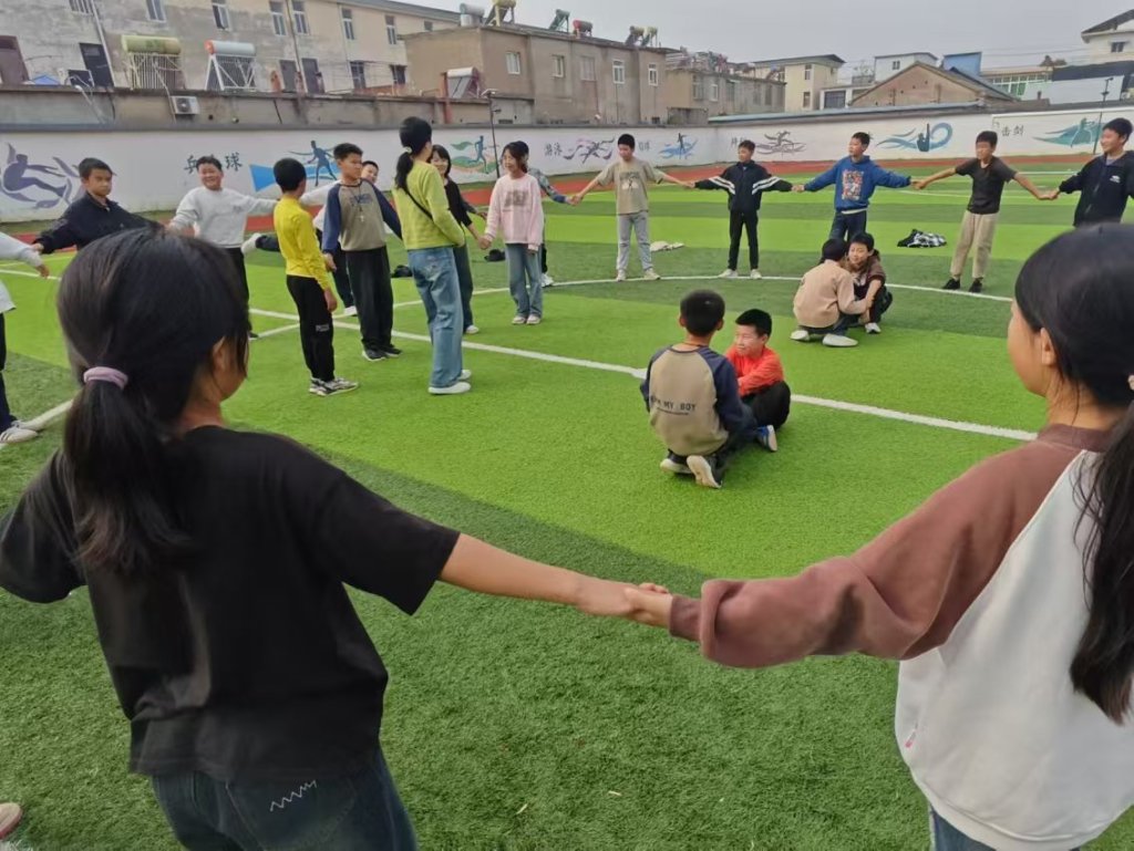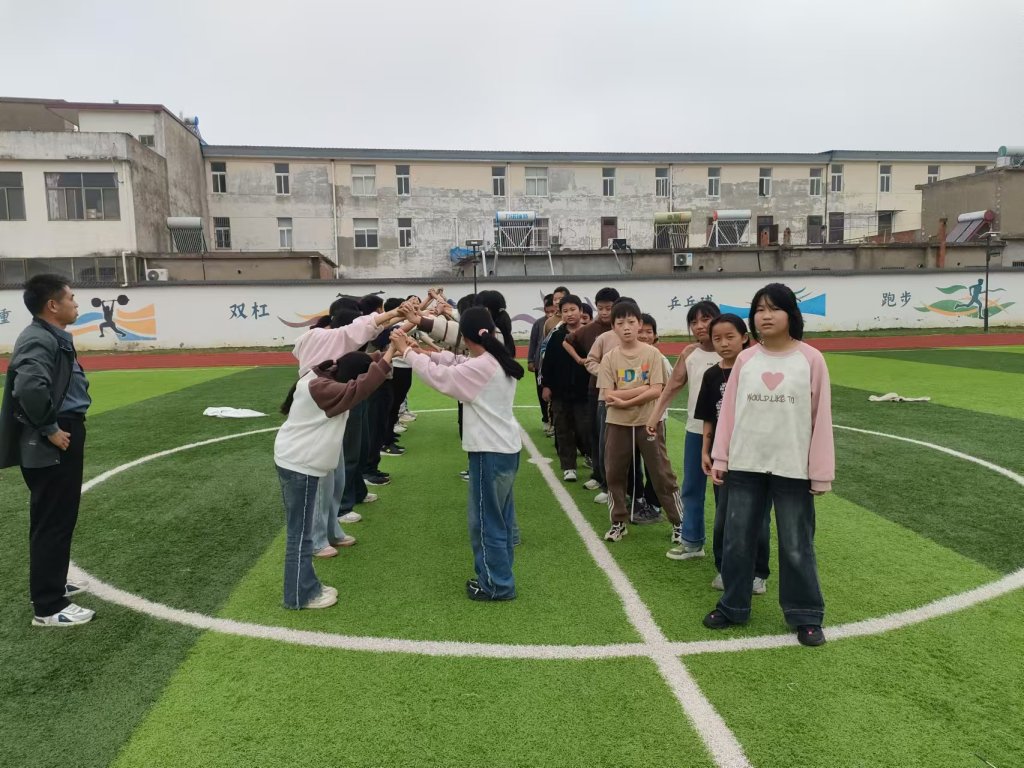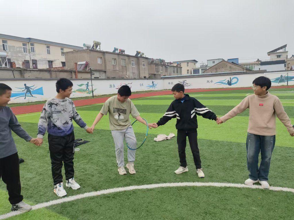 ~ 当日上午九点,活动在学校运动场正式开始。整场活动包括五个环节,内容依次为“小蜜蜂”、穿越丛林、笑脸蹲、快乐跳、一圈到底等五个拓展游戏。在训练中,同学们在心理健康老师的精心组织下,积极有序参与各种游戏活动。整个活动过程,同学们激情澎湃、心情愉悦、兴致盎然,他们在团队合作游戏中增强了协调沟通和团结协作能力,培养了竞争意识和拼搏精神。